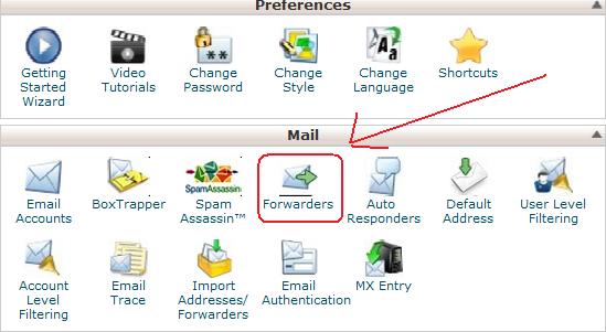2. Once logged into your cpanel, look for the email forwarders icon (see screenshot below) and click it: