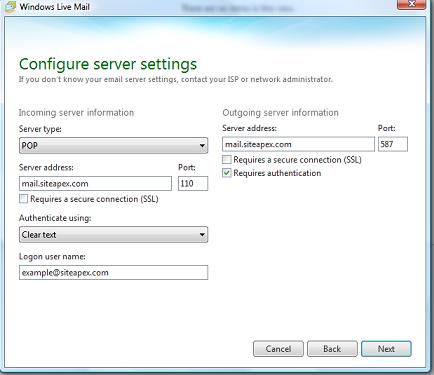 - Outgoing Server address - enter 'mail.yourdomain.com' here