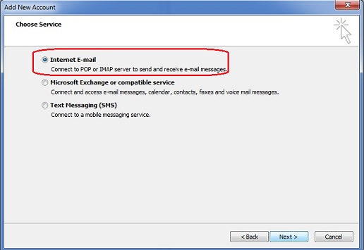3. On the following screen, choose 'Internet Email' and click 'Next'