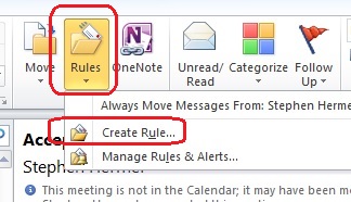 4. On the Home tab, click 'Rules' -> 'Create Rule'