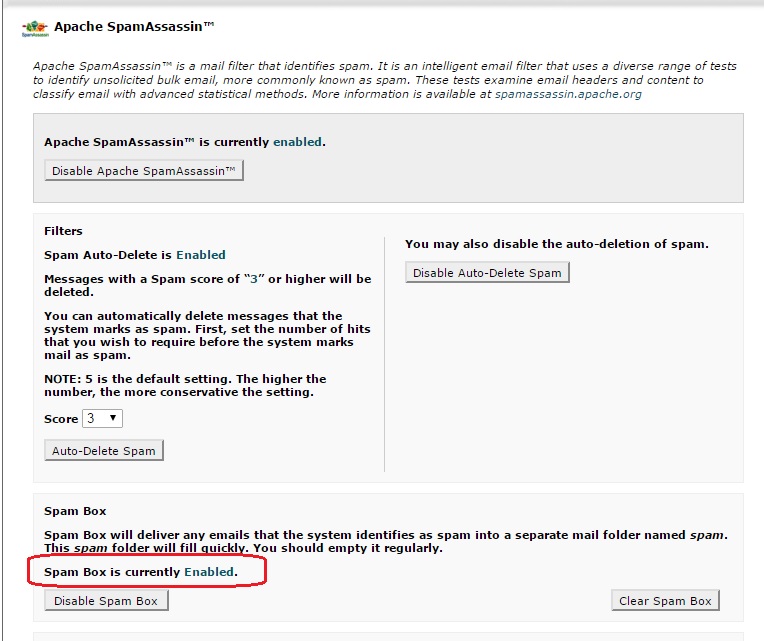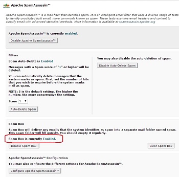 1. First, make sure that SpamAssassin is turned on and you have the spambox enabled.