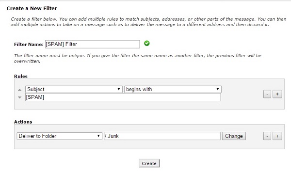 - Filter name - name the filter something that you'll remember, something like SPAM Sorting