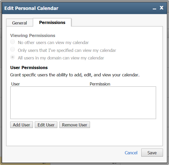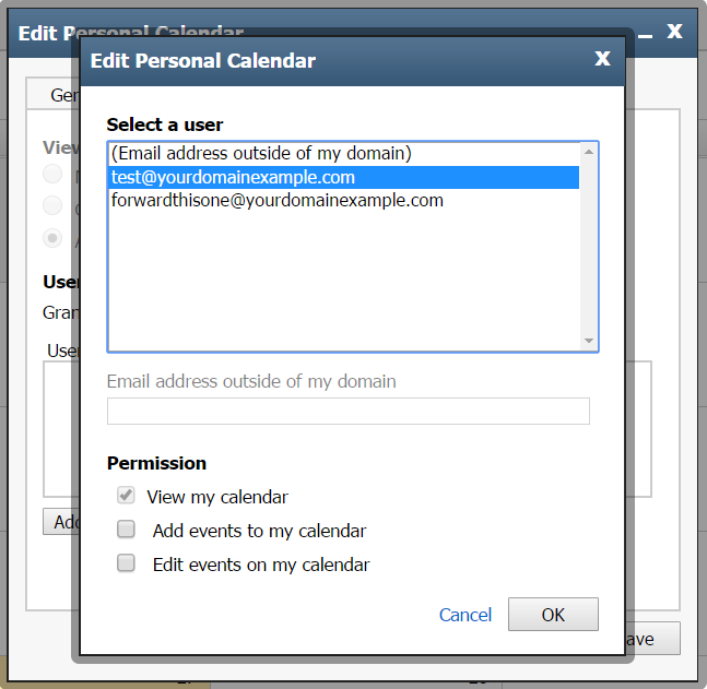 - Select desired user from the list you wish to grant permissions to the calendar.
