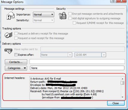 If you need help finding the header information of an email, check out this article: http://www.abika.com/Reports/Samples/emailheaderguide.htm