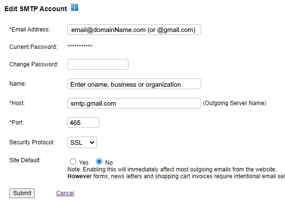 Now you can use these settings in the control panel area of SiteApex to send from your Gmail account