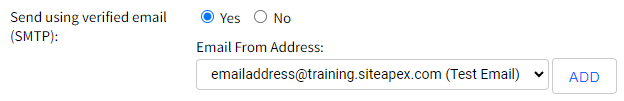 - Choosing Yes will use SMTP to send an email message. This means it will log into a real email address and send the email using a proper send protocol that is more secure and less likely to be seen as suspicious or as spam. You can click "Add" to add a new email address to send from.