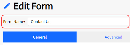 There are 4 tabs in the form edit screen containing different sets of tools to use on your Form. This article covers the General Tab. The articles that proceed this one explain what options are available on the Advanced, Security and E-commerce tabs.