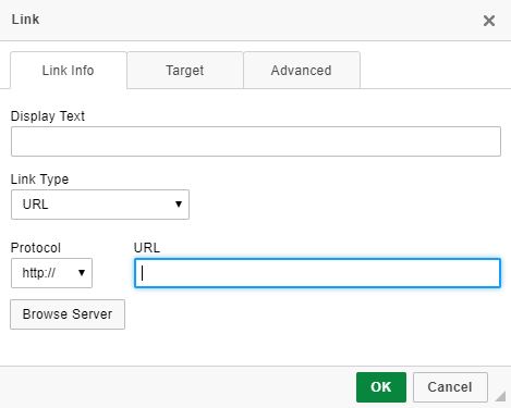- Protocol: Choose the protocol appropriate for your link. Typically you will use "http://" if you are linking to a secure page select "https://". Tip: you do not need to have a protocol in the URL line.
