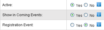 - Click Edit on event you wish to have on the "Upcoming Events". Look for the "Show in Coming Events" field and turn this on to show this event in coming events or off if you do not wish it to show in the coming events.