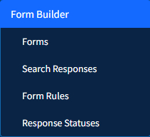When clicking on Form Builder in the main menu you will see further areas of this module. The primary areas of the modules are Forms and Search Responses.