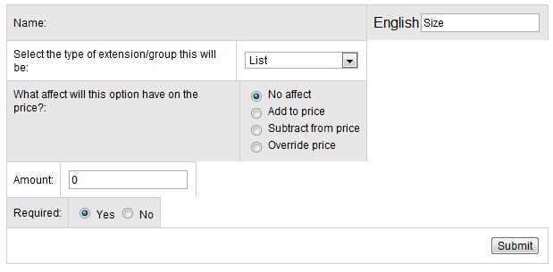 • Required - Does the customer have to choose an option from this product group before they can add this product to their shopping cart - example, you would probably want to specify 'yes' if you were selling a t-shirt and you need the customer to specify what size they want to order.