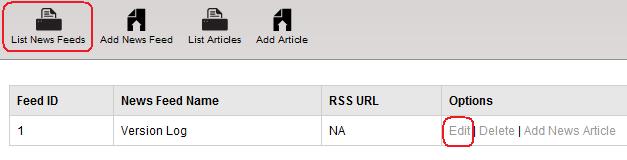 3. Click 'list news feeds', then click 'edit' beside the mini-news feed you would like to edit